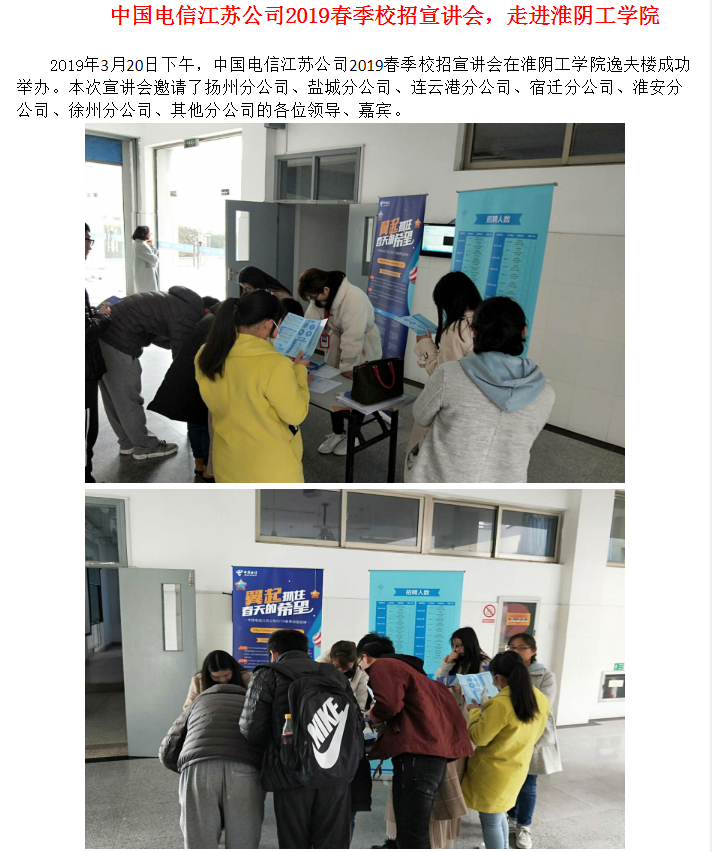 中國電信股份有限公司江蘇分公司淮安公司與淮安贏夏人力資源有限公司達成2020年春招合作!