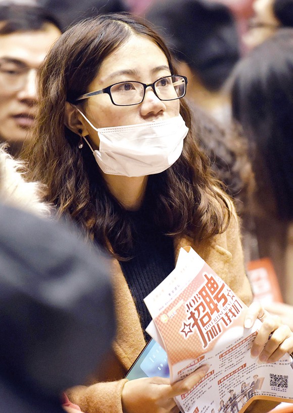 2月23日,求職者在于淮安市體育館舉行的招聘會上尋找合適的崗位。當日,我市舉辦春節(jié)后的第二場大型招聘會,電信、房產、機電、化工等行業(yè)的數(shù)百家用人單位,提供了4500個崗位供選擇。(賀敬華 周長國)