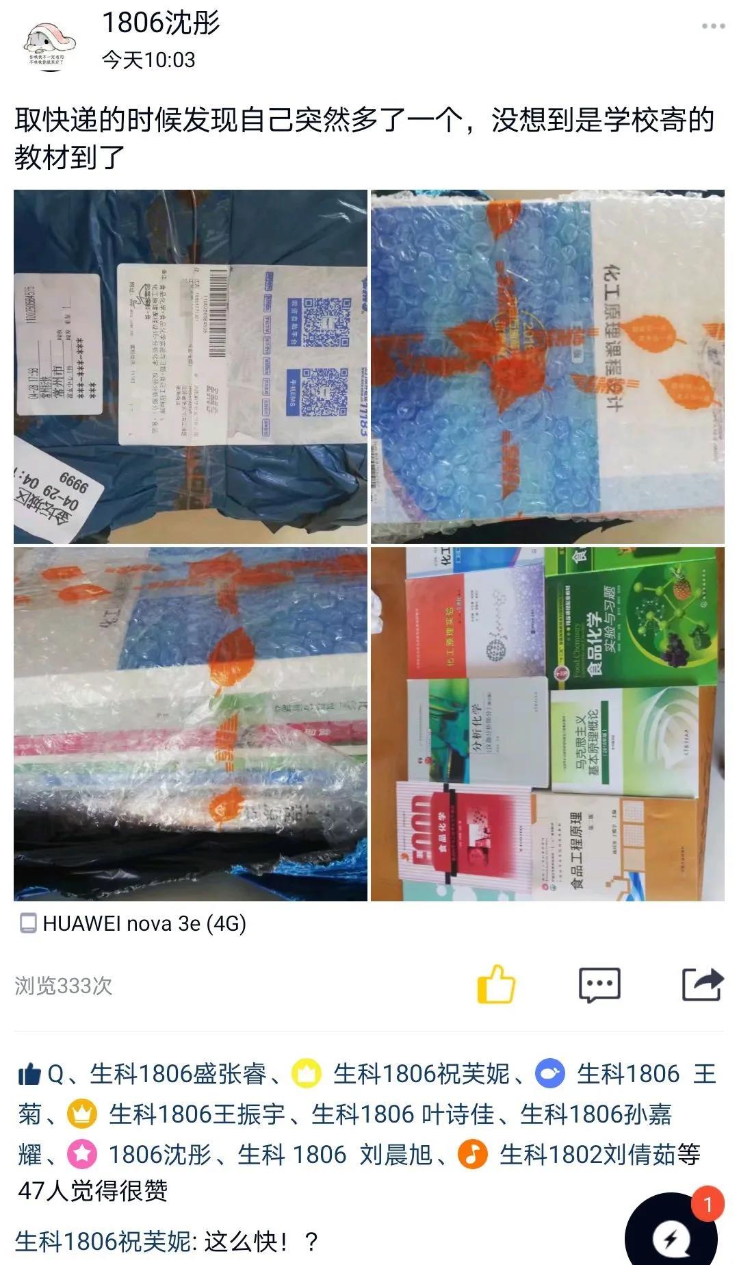今日,淮師同學(xué)紛紛在朋友圈里花式“曬書(shū)”“隔空不隔愛(ài),溫暖送到家”