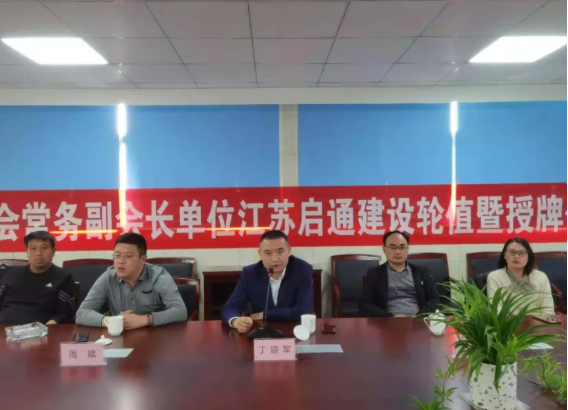 經(jīng)淮安市徐州商會(huì)秘書處走訪考察和商會(huì)第二屆理事會(huì)研究審議,后報(bào)淮安市工商聯(lián)批準(zhǔn),新加入商會(huì)的常務(wù)副會(huì)長單位江蘇啟通建設(shè)工程有限公司符合入會(huì)條件并于4月17日下午隆重舉行淮安市徐州商會(huì)常務(wù)副會(huì)長單位江蘇啟通建設(shè)輪值暨授牌儀式。