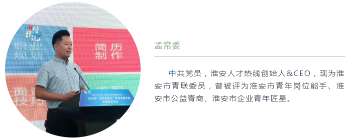 孟常委畢業(yè)于淮安的一所普通專(zhuān)科學(xué)校,當(dāng)年和很多同學(xué)一樣,畢業(yè)后面臨著同樣一個(gè)問(wèn)題——就業(yè)難。他做過(guò)飯店服務(wù)員,當(dāng)過(guò)超市理貨工,在探尋自己職業(yè)方向上費(fèi)盡了心思、吃盡了苦頭。工作的時(shí)候他一直在思索,現(xiàn)在淮安每年那么多畢業(yè)生,畢業(yè)后第一個(gè)要面對(duì)的問(wèn)題就是就業(yè),如何能夠更好地幫助他們解決這一問(wèn)題?于是,孟常委有了創(chuàng)辦人才公司的念想。2012年,孟常委覺(jué)得時(shí)機(jī)成熟,迅速成立了淮安贏(yíng)夏人才公司,致力于讓更多的人才“未出校門(mén)、不出家門(mén)”就能在淮安找到好工作、擁有好生活。公司創(chuàng)立之初,由于需要到一線(xiàn)拜訪(fǎng)企業(yè)、收集崗位信息,孟常委半年騎壞了2輛自行車(chē),人也瘦了一圈。最終,自己的辛苦換來(lái)了事業(yè)上的甘甜,孟常委的人力資源事業(yè)新局面不斷被打開(kāi),這也更加堅(jiān)定了他要做好淮安一線(xiàn)“人才紅娘”的決心。